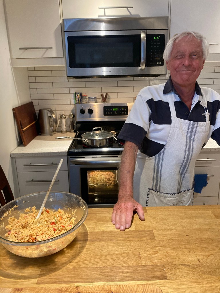 For our recent three-generation Behrisch backyard potluck, my dad waited to make the salmon cakes so that I could help him. I’d had a full day of cooking: I’d already made a mushroom quiche, a mango salad, and a “spiked rosemary bread” from a recipe in my new favourite cookbook, Displaced Dishes, a collection of recipes from the residents of a makeshift refugee camp on Samos Island. Everyone was hungry. My nephew had to rush off to a soccer game. People were picking at my mom’s salad. The olives were already gone.